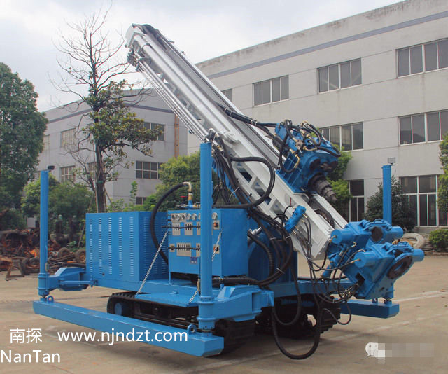 該鉆機(jī)最大特點(diǎn)為動(dòng)力頭行程為5米,配備有大扭矩液壓馬達(dá)回轉(zhuǎn)、油缸推進(jìn)及提升能力大。配有液壓伸縮隨手吊車和液壓卷揚(yáng)機(jī),減輕勞動(dòng)強(qiáng)度。動(dòng)力頭具有多種速度,使得鉆孔范圍更寬。液壓支腿行程大,不需吊車鉆機(jī)即可轉(zhuǎn)場(chǎng)裝卸。