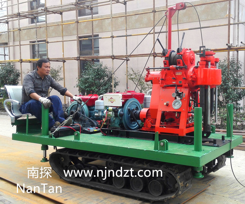該履帶底盤承載重量達(dá)4T,可以裝載各種小型鉆機(jī),如:XY-1-1、XY-1、XY-1A、XY-1A(YJ)、XY-1A-4、XY-1A-5、XY-1B、XY-1B-1、XY-1B-2、XY-200、XY-200(YJ)、XY-200B、XY-200B-1、XY-200B-2、GXY-1系列、GXY-2Q、GXY-200B、GYQ-200、GYQ-200A、GK180、GXY-2K、GXY-2C等100-300米鉆機(jī),并可同時裝載BW160、BW160A、BW200或BW200A型泥漿泵,具有利用鉆機(jī)卷揚(yáng)機(jī)起落鉆塔、行走方便等特點,廣泛適用于公路、鐵路、水電、橋梁、壩基等的工程地質(zhì)勘察、地質(zhì)巖芯鉆探、物理勘察、小型灌漿孔、爆破孔、水井孔和空調(diào)孔的鉆進(jìn)。