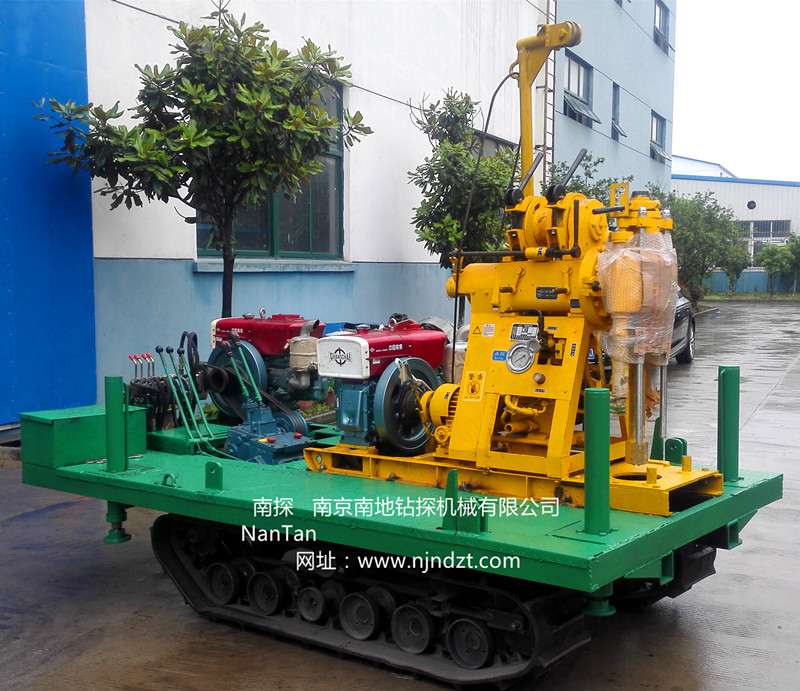 2、該履帶底盤承載重量達4T,可以裝載各種小型鉆機,如:XY-1、XY-1A、XY-1A(YJ)、XY-1A-4、XY-1A-5、XY-1B、XY-200、XY-200(YJ)、XY-200-1、XY-200-2、XY-200A、XY-200A(YJ)、XY-200A-1、XY-200A-2、XY-200B、GXY-1、GXY-1A、GXY-1B、GXY-1C、GXY-2K、GXY-2Q、GXY-200B、GYQ-200、GYQ-200A、GK180、GXY-2C等,并可同時裝載BW160、BW160A、BW200或BW200A型泥漿泵,廣泛適用于公路、鐵路、水電、橋梁、壩基等的工程地質(zhì)勘察、地質(zhì)巖芯鉆探、物理勘察、小型灌漿孔、爆破孔、水井孔和空調(diào)孔的鉆進。具有結(jié)構(gòu)緊湊,重量輕,體積小,可拆性好等優(yōu)點。